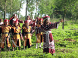 (Đêm tân hôn, ngoại cảnh trước dinh thự của Nhất điện, tiếng trống, tiếng nhạc vui nhộn, tiếng pháo nổ. Đoàn cung nữ đi trước rãi hoa trên đường đi. Vũ dìu Cơ đi vào. Cơ xinh đẹp và rạng rỡ trong chiếc áo tân thê. Vũ đạo chung với đoàn cung nữ) - Một lần nữa ... vũ đoàn ... không như ý định. - Nhạc: Vũ Cơ Bái Lễ 1. Bài này chia làm 2 đoạn lập lại với lời khác nhau. Lời của Diệp Cơ như tung tăng hân hoan của một cô gái trọn ước mơ tình yêu. “Bước vu quy vui pháo hồng Ước mơ duyên tơ tình bấy lâu Cùng hùng anh bên nhau hòa phu thê (nhạc) Hỡi phu tướng, rượu mời ai Xin mãi chung bóng chung hình Đời trao anh, duyên tình ngàn năm Bên chàng chung thủy trọn đời.” Trong lúc đó thì lời của Nhan Vũ mang vẻ chung chung, đối lại cho vui lòng cô dâu. “Lễ tân hôn câu chúc mừng Chúc uyên ương đẹp tình lứa đôi Nàng đẹp xinh say mê hồn tân lang À a à a a á a … Mỹ … tửu, ai mời dâng Câu hứa chung thủy chung tình Lời trao nhau, ân tình bền lâu Bên nàng chung thủy trọn đời” Nét diễn của Vũ Linh và Thoại Mỹ thật là hoàn mỹ ở đoạn này. TMỹ thì thật là tươi, tíu tít xoay quanh tân lang cười mãi, nhìn là cảm được cô nàng hạnh phúc đến cỡ nào. Còn a Linh thì mang nét diễn … vô hồn, lời thì nói đó mà cử chỉ gương mặt không rạng rỡ của một tân lang trong đêm tân hôn, miệng cười mà đôi mắt không vui. Về giọng hát thì các sis để ý ở phần Thoại Mỹ hát, Ti để “nhạc”, còn đoạn a Linh hát là “à a à a a á a”. Tại vì chị Mỹ không lên cao giọng được, lên là mất hơi liền, nên Ti để nhạc chơi đoạn này. Nhưng ở phần a Linh thì Ti biết anh dư hơi lên cao, nên để anh hát. Lúc đầu thì anh Minh Tâm muốn chị Mỹ hát thay vì nhạc. Anh hỏi chị Mỹ “hát luôn đi Mỹ. Lên nổi không?” Ti ngồi lắc đầu và lên tiếng cản, vì Ti không muốn chị cố gắng quá sẽ uổng giọng của chị mà để lộ điểm yếu của chị. Chị Mỹ cũng cố hát … chịu thua, chị lè lưỡi lắc đầu lia lịa “thôi thôi … không lên nổi” Ti ngồi hí hửng trong lòng 1 tí là tui biết người biết ta. Tới a Linh thì ổng lên xuống tỉnh bơ, mà lúc này là a Linh đang bị … mất tiếng. - Nhạc: Vũ Cơ Bái Lễ 2. Bài này a a nhiều vì a Linh mà a ơ thì anh đưa giọng rất hay. Tiếc 1 là a Linh không lên cao giọng như Ti mong muốn vì anh bị khan tiếng, nhưng như Ti nói, khi giọng anh bị khan, anh có nét sexy trong phát âm. Lúc hát bài này ổng hơi bị sùng bố. Một phần là vì ổng bị khan tiếng nên ổng tự sùng ổng. Khi vào thâu tiếng, anh cất tiếng một cái là anh trợn mắt không tin mình bị mất tiếng. Ổng đằng hắng cho mấy chục cái, uống liền nước mát, nói Ti đưa thuốc ngậm thông cổ cho anh. Ổng tự lầm bầm, “Chết rồi.” Anh kêu Ti hát sơ qua bài để anh nghe giọng. Tui mà ca thì cũng ở đâu trên trời mà ở dạng … lạc giọng. Anh nghe xong rồi ràm, “trời ơi, lại a ơ nữa, chết tui rồi.” Thế là anh đứng dạng chân, lấy hơi vô. Hát trật nhịp những đoạn a ơ, Ti đứng kế bên hát lại cho anh nghe. Ổng nghe ổng sùng thêm, gằn giọng “Em hát trật giọng làm anh khó theo quá đi.” Thôi, tui im, biết ổng đang sùng rồi, chạy ra ngoài kéo sư phọ Minh Tâm vô kíu mạng! Nhạc: Nỗi lòng Nhan Vũ. hì hì hì … cho Ti cười tại vì đang viết mà Ti phì cười vì Ti nhớ cái cảnh đó nhìn a Linh thật là tội nghiệp. Nện cho ổng 3 bài toàn là giọng cao không. Anh hát bài này xong hỏi “Còn kiểu bài này nữa không. Tui sùng rồi đó nha.” Anh Minh Tâm dỗ ngọt, “sắp hết rồi.” Ti bắt đầu kiếm chỗ … núp. Choa lội cái phòng chẳng có chỗ nào trú thân, nên Ti cuốn gối ngồi dãy đằng sau a Linh để ổng khỏi phải thấy khuôn mặt đẹp tròn dinh dễ xương của tui mà động lòng … dũa! Định mở miệng khen là “giọng anh khan nghe sexy quá anh” mà thôi … im, lúc này im lặng là vàng mà. - Trang phục: cái bộ đồ chú rễ... xấu ở cái mão. Ti chịu không nổi cái mão, muốn a Linh bỏ luôn cái mão đi cho rồi, mà ai mà bỏ mão trong lúc tân hôn, nên vừa nhìn mà vừa... tím mặt. Cái mão như vậy mà làm cho được à. Khi hiểu ra thì bên đồ hội đo sao mà làm mão quá nhỏ, nên a Linh đội không vừa, ráng đè vô đầu thì anh bị đau, thêm nữa là anh không dám xoay người nhiều sợ rớt mão. Choán!!! Nhưng thật ra đúng tâm trạng của Nhan Vũ thì đoạn này không phải là đoạn a Linh trổ tài vũ đạo vì ổng đang diễn "nát lòng", "chán chường" mà vũ cái gì nổi mà vũ!!! - Cảnh trí: (Vũ mệt người vì say rượu, nên gục xuống bàn ngũ, chiếc vòng ngọc bích trên tay của Vũ rớt xuống đất. Cơ vẫn trong bộ áo tân hôn từ trong đi ra, tay cầm cặp hồng lạp đang cháy thấy Vũ nằm trên bàn, Cơ khẽ đặt hồng lạp xuống bàn, khẽ gọi) Cơ: Vũ lang … Vũ lang à … (chợt thấy vòng ngọc bích, Cơ cuối người lượm lên nhìn. Khi nhìn biết là vật của tên một người con gái, Cơ ngồi phịt xuống ghế ngây người ra. Cơ cứ ngồi im đó cho tới khi trời sáng. Cặp hồng lạp c